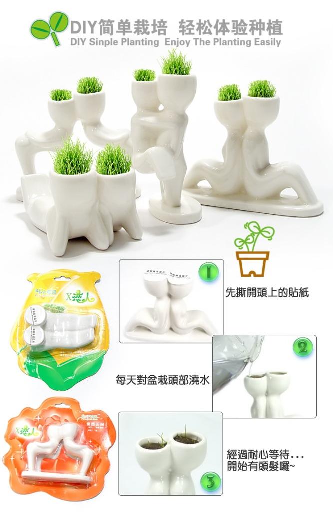 2.擦干“X恋人”的表面,耐心等待5-8天后,恋人的头部就长出青草,请每日浇水。